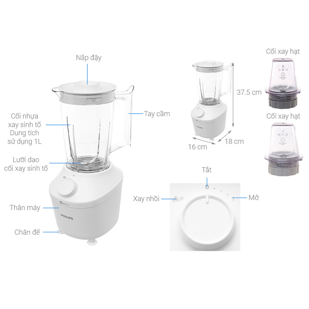 Máy xay sinh tố Philips HR2041/50 - 3 cối | Meta |