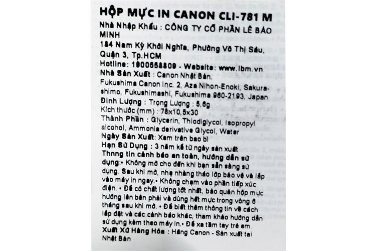 Hộp mực in phun màu Canon CLI-781 M/Đỏ (dành cho TS6370,TS9170,TS707, TS9570)