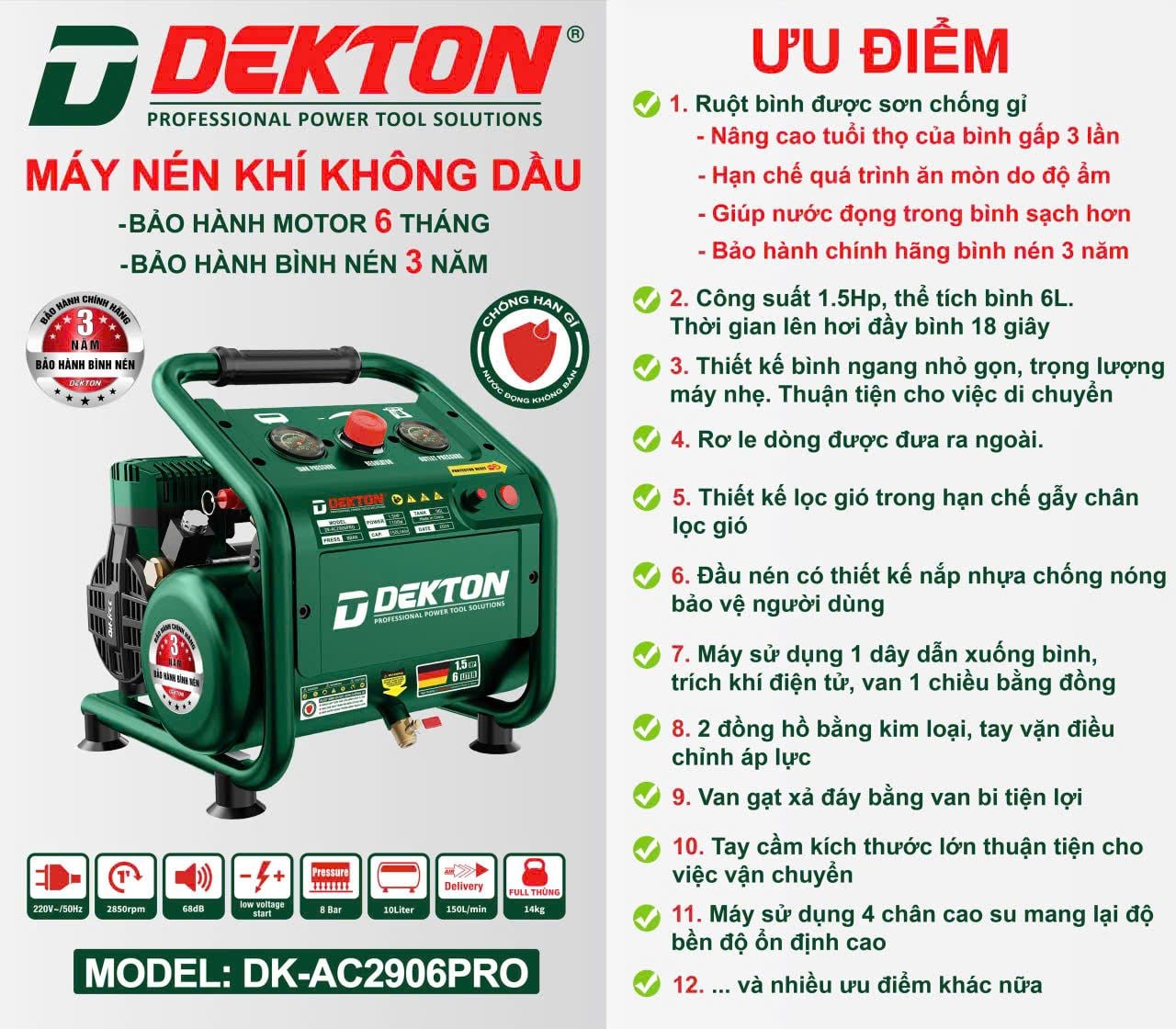 Máy Nén Khí Không Dầu Dekton DK-AC2945