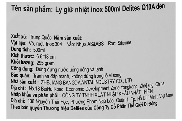 Ly giữ nhiệt inox 500 ml Delites Q10A đen