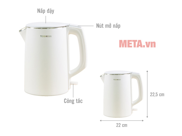 Ấm siêu tốc chống tràn Toshiba KT-15DRTVN(W/H) | Meta |