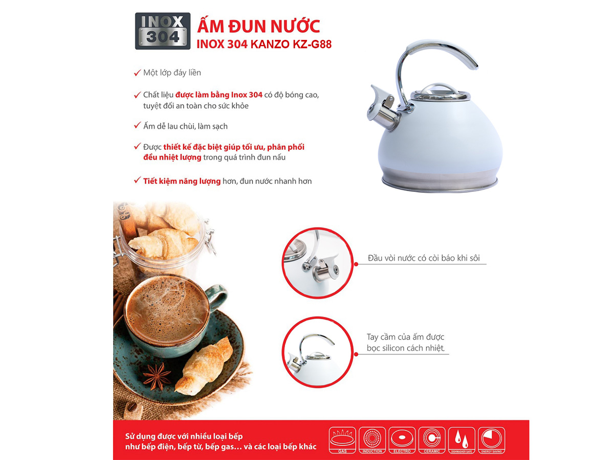 Bạn đang chuyển đến trang bán sản phẩm Ấm đun nước đáy từ có còi báo Luxury Kanzo KZ-G88 (3.0L)