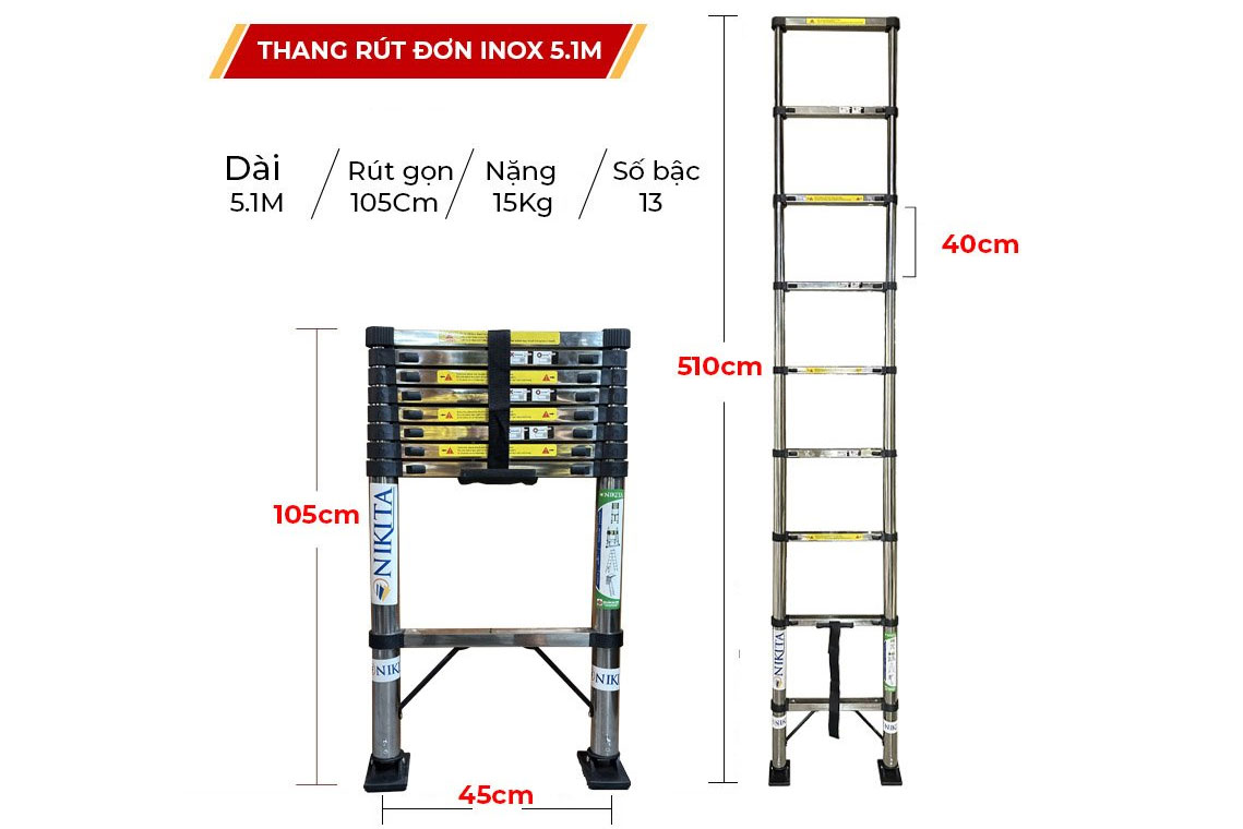 Thang inox rút đơn gấp gọn Nikita ID51