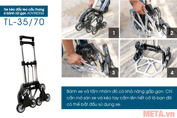Bạn đang chuyển đến trang bán sản phẩm Xe kéo đẩy leo cầu thang 6 bánh rút gọn Advindeq TL-35/70
